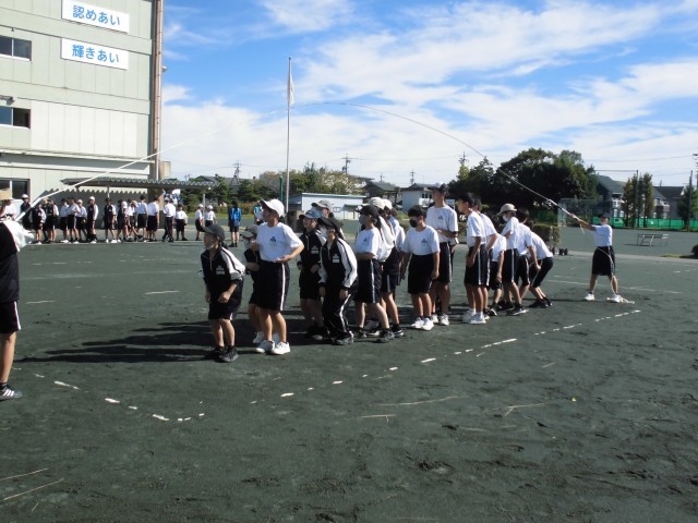 明日に迫った体育祭へ向け学年種目の練習を行い、並び方や各学級の作戦等の最終確認を行いました。