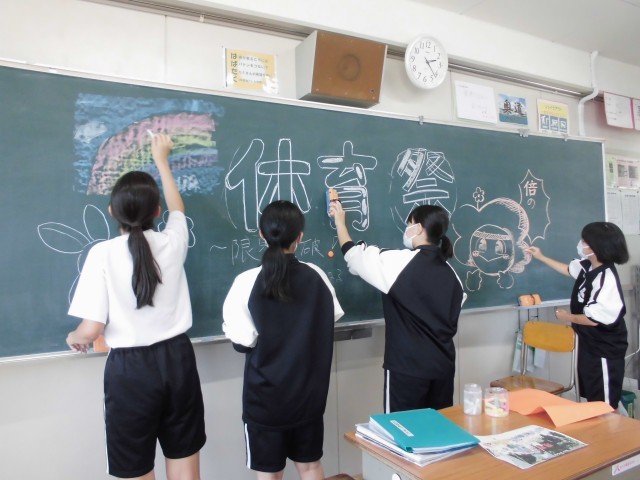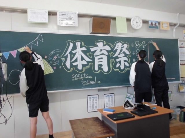明日は最高の体育祭になるよう、学級で、群団で、学年で、そして奥中全体で団結しましょう!