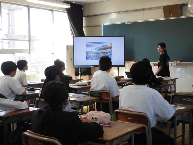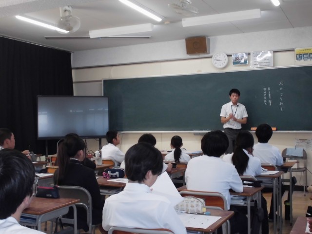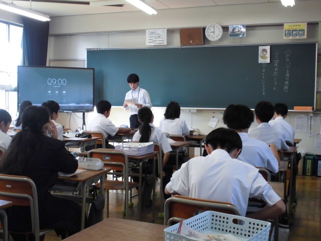 1時間目の道徳の授業の様子です。普段とは少し違い、2クラスで実習生が道徳の授業を行いました。