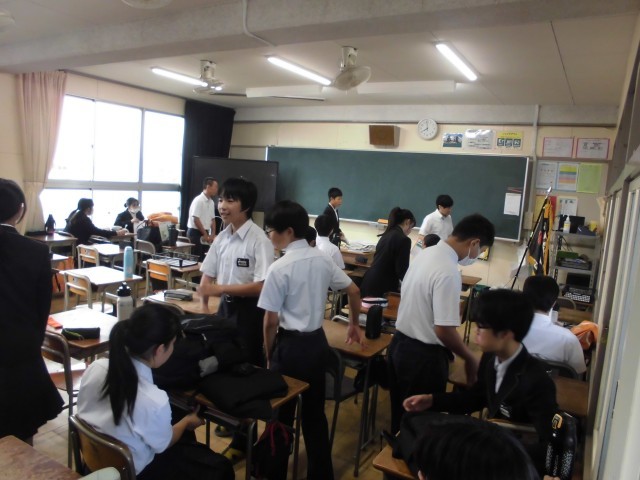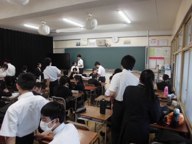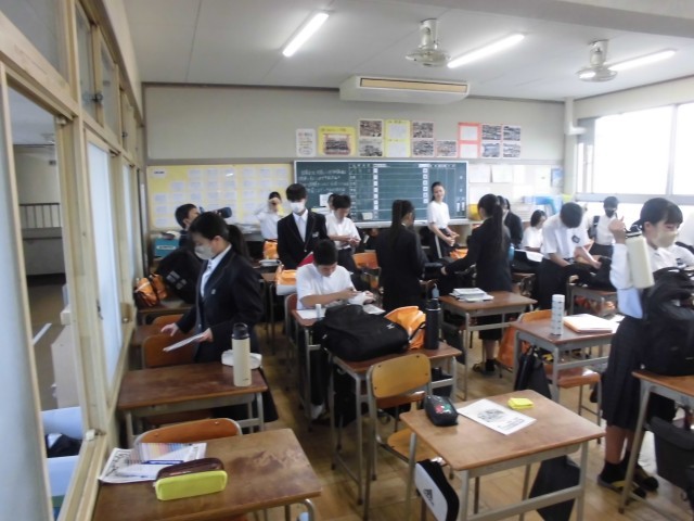 今日の8時ごろ,登校後・朝のあいさつ前の教室の様子です。