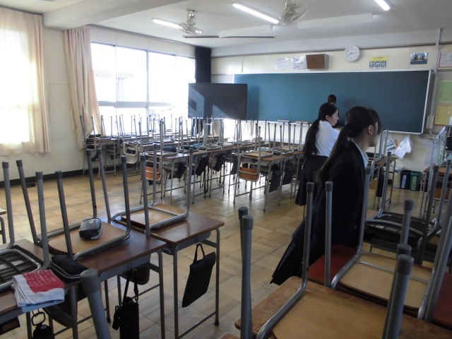 10.17 清掃の様子(2年) 公開日 2025/10/17 更新日 2025/10/17 2年 今日はすばらしい青空です。雨上がりで空気が澄んで遠くの山並みもはっきりしています。少しずつ秋らしい気温になってきました。今日も朝の清掃に黙々と取り組んでいます。 +5