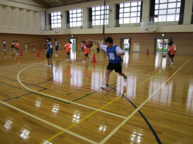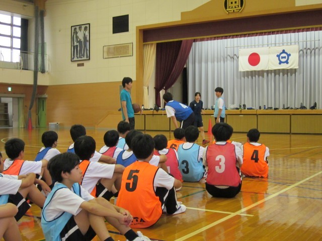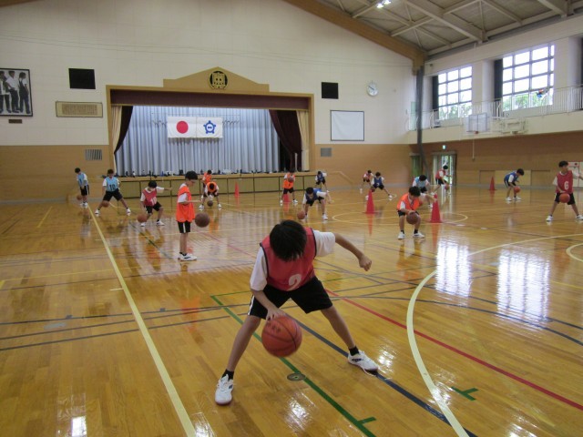 本日の授業の様子です。教育実習生の先生の指示をよく聞いて戦術についての知識を深めていました。生き生きとバスケットボールを楽しみ、たくさんの笑顔が見られました。