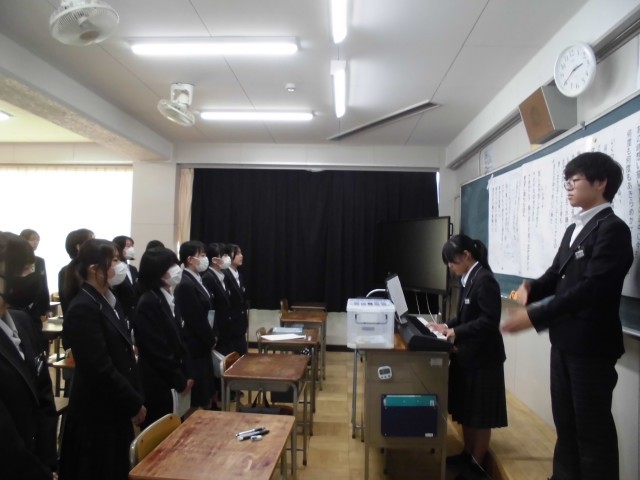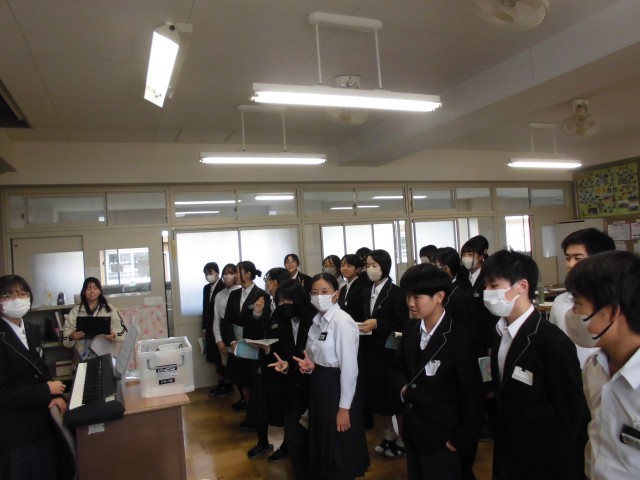 今週最後の授業は合唱練習、それぞれの教室で練習を行っていました。パートで音程をとっている学級、全体で合わせている学級、前回の合唱を聴いている学級等様々です。1年生、2年生の頃の練習と比べると、3年生のとてつもない成長が見られています。合唱に向かうかっこいい姿をぜひ、保護者の皆様に聴いていただきたいです。来週も練習を積み重ね、各学級やパートで意見をぶつけ合い、より素晴らしい合唱をつくり上げてくれると信じています。