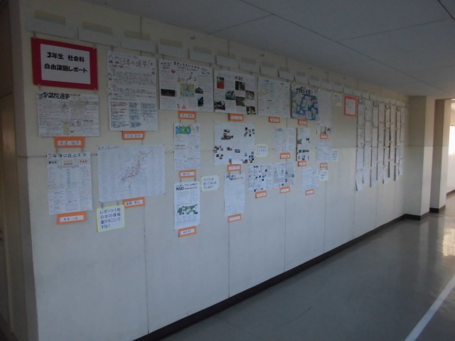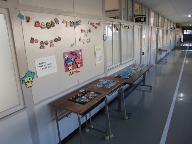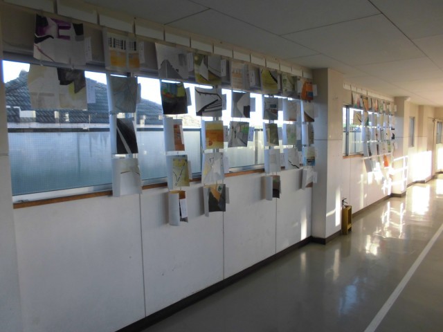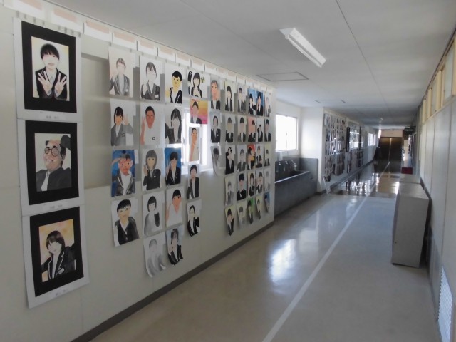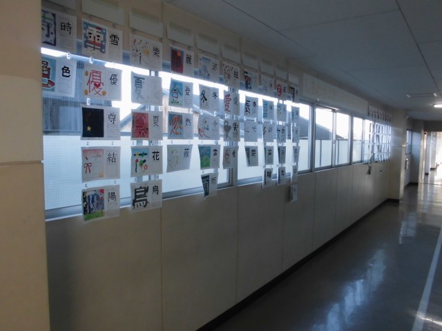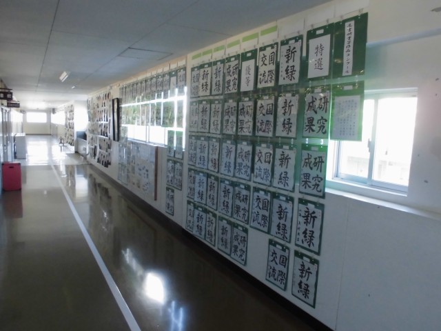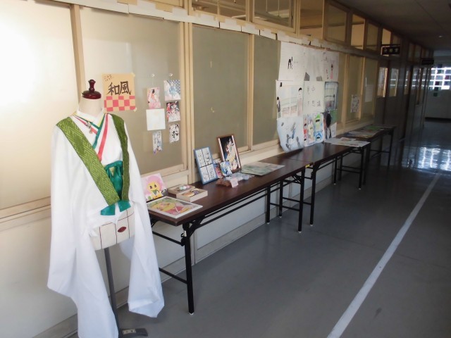 奥中文化フェスタが,校舎2階で行われています。学校で制作した作品などが展示されています。