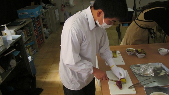 本日、6・7・8組が主催するサツマイモパーティーが開催されました。生徒たちが育てたサツマイモを、自分たちで調理して、先生方に食べて頂きます。今回が3回目なります。生徒たちが自主的に招待状をだしたり、先生方をもてなすことで授業だけでは学べない多くのことを身に着けています。