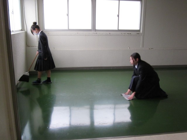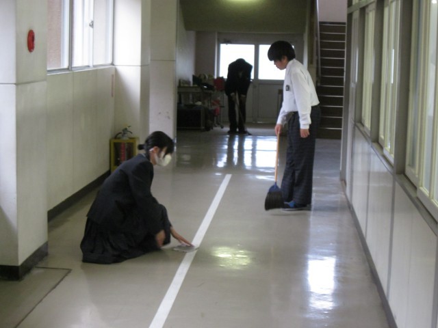 朝の清掃を黙々とやります。各々清掃場所で時間いっぱいまで取り組んでいます。