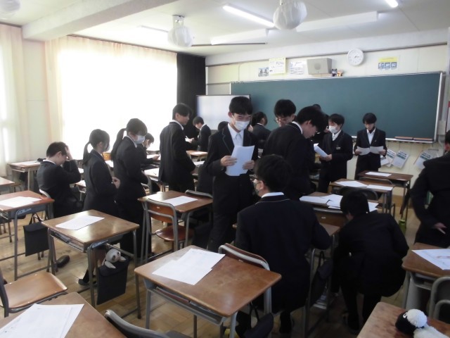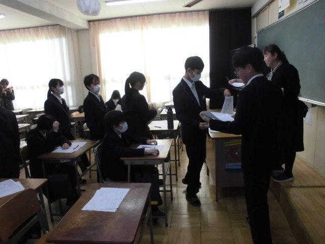 今日の7限は,まだ返却されていない2学期期末テストの4教科のテスト返しが行われました。