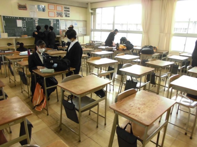 今日の7時50分頃の教室の様子です。登校した生徒はまばらです。