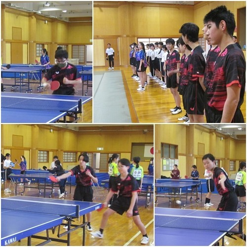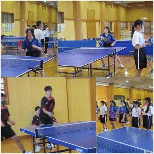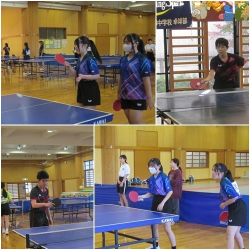 本日、卓球部男子と女子は一緒に中部中学校へ行って、練習試合をしました。中部中学校の武道場で今伊勢中学校も交えて、3校で団体戦や個人戦を行いました。久しぶりの対外試合で、生徒たちも気合を入れて頑張りました。