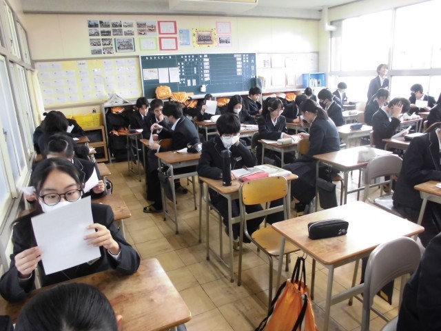 12.1 学級活動(2年) 公開日 2025/12/01 更新日 2025/12/01 2年 今日の学級活動は,クロームブックを使ったアンケートの入力,2学期期末テストの成績個票の確認を行いました。また,Blueberryキャリヤ教育オンラインイベントの質問事項を考え,プリントへの記入などを行いました。 +5