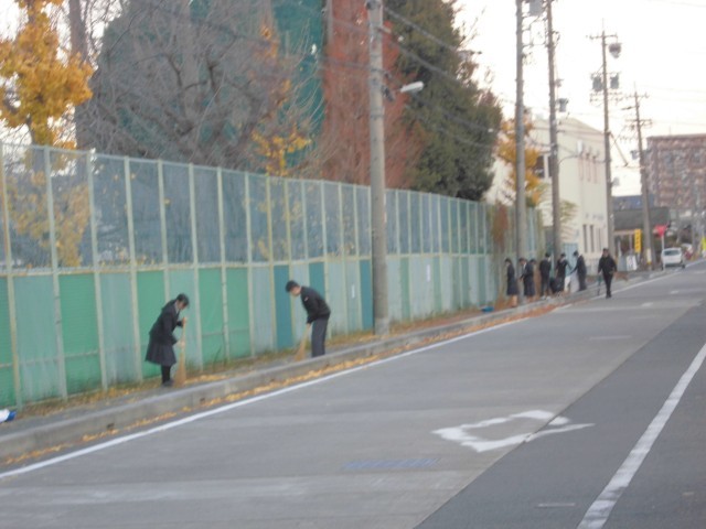 清々しい環境でお迎えするために、生徒や担当の先生が校舎の周りを片付けてくれています。