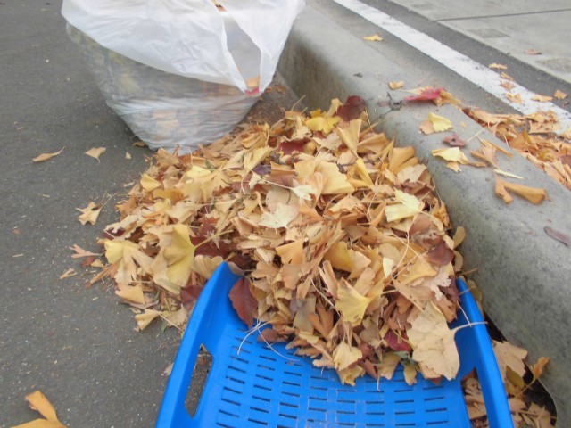 顔を上げて美しい紅葉にほっと心が和む反面、ふと下を見ると大量の落ち葉で毎日ため息が…。