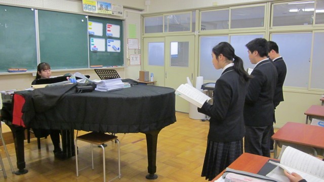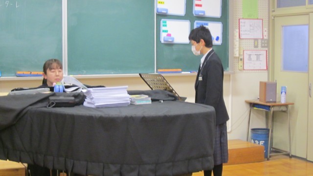 6・7・8組の音楽の授業では、少人数で行われます。本日は、3学期に行われる送る会や卒業式に向けて、そこで歌われる合唱曲の練習をしました。まず、各自でヘッドホンで聴いて、歌う練習をします。そのあと、個人ごとに先生の指導を受けて、最後はみんなで声を合わせて合唱します。みんな大きな声で正しく歌うことができました。