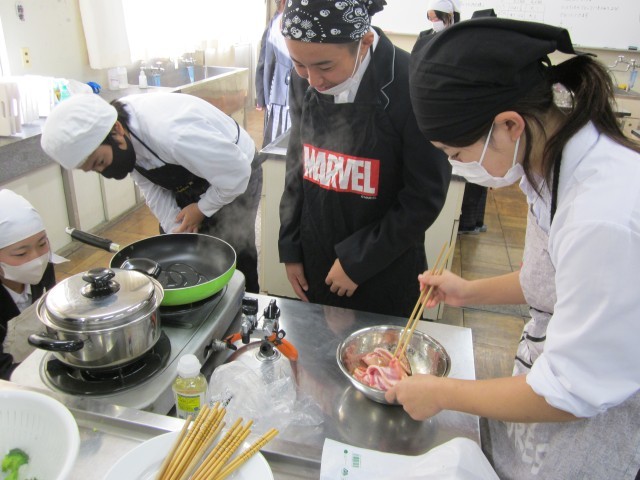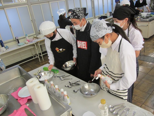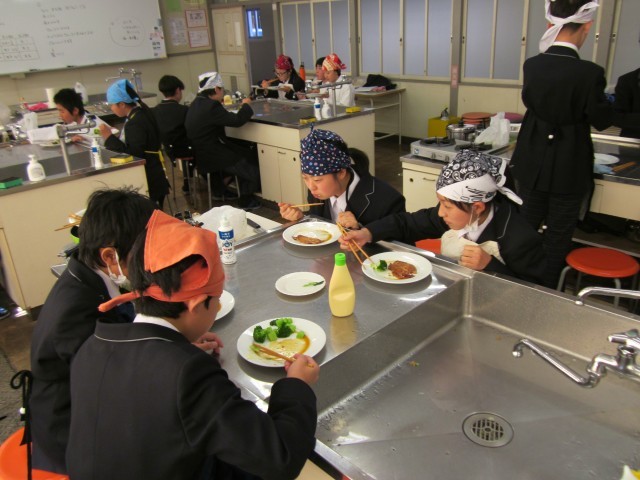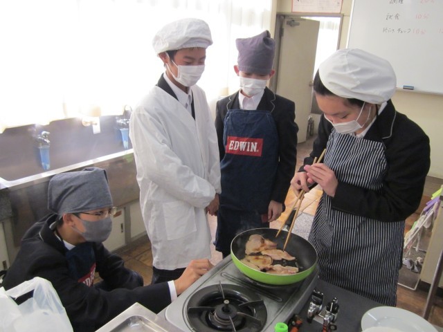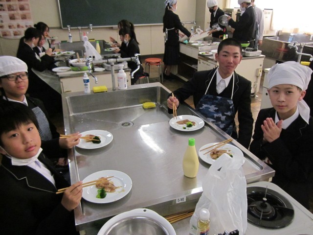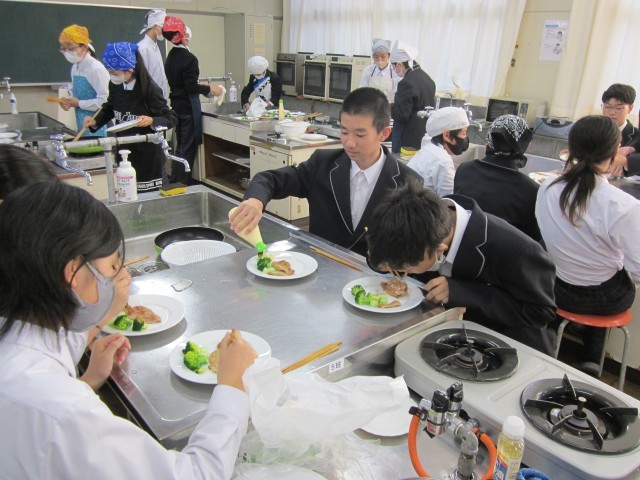 12.10 調理実習の様子(1年生) 公開日 2025/12/11 更新日 2025/12/11 1年 10日には、3組と4組で調理実習を行いました。各班、協力して分担しおいしい豚の生姜焼きを作ることができました。 +5