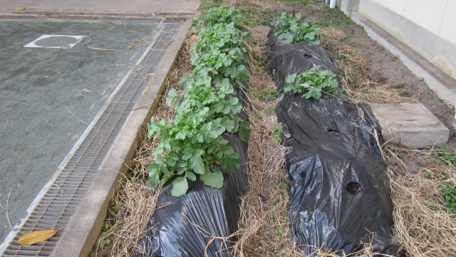 本校の校舎の南側、6・7・8組の生徒が耕している畑があります。自立の時間に定期的に耕したり、水を与えたり、収穫したりして生徒たち自らが育てています。現在は、サツマイモの収穫が終わり、新たに株や大根を栽培しています。来年には収穫できればと思います。