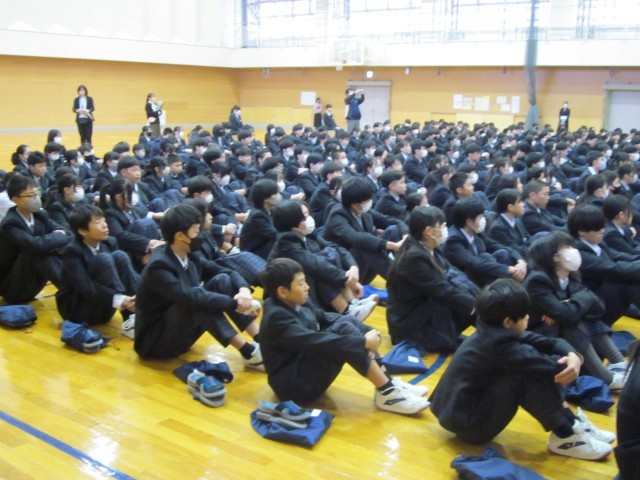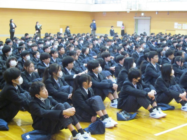12.23 2学期終業式(1年) 公開日 2025/12/23 更新日 2025/12/23 1年 底冷えがする中、2学期を締めくくる終業式が行われました。式の中で、先生方から冬休みの過ごし方について大切なお話を聞きました。 2学期の間に、皆さんは大きく成長しました。日々過ごす中で、その成長を実感しています。ぜひ3学期を、1年生の締めくくりである起承転結の「結」につなげていってください。そして、また1月7日に元気な顔を見せてくれるのを楽しみにしています。 +1
