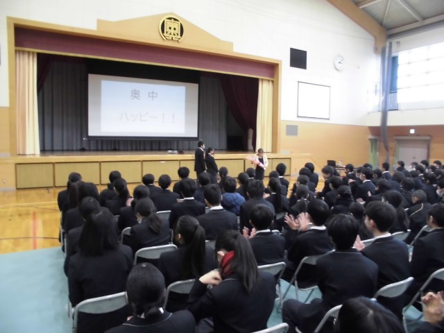 1.15 学校保健委員会(2年) 公開日 2026/01/15 更新日 2026/01/15 2年 今日の午後,体育館で学校保健員会がありました。会の前半は,話し方講師・フリー司会者の方のハッピートーク+コーチングなどの話を聞きました。会の後半は,養護の先生から生徒の健康状況などの話を聞きました。その後,2年生が会場の片づけをし,余りの時間でレクリエーションを行いました。 +5