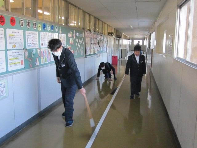 朝の清掃の様子です。厳しい寒さの中でしたが、丁寧に取り組んでいます。