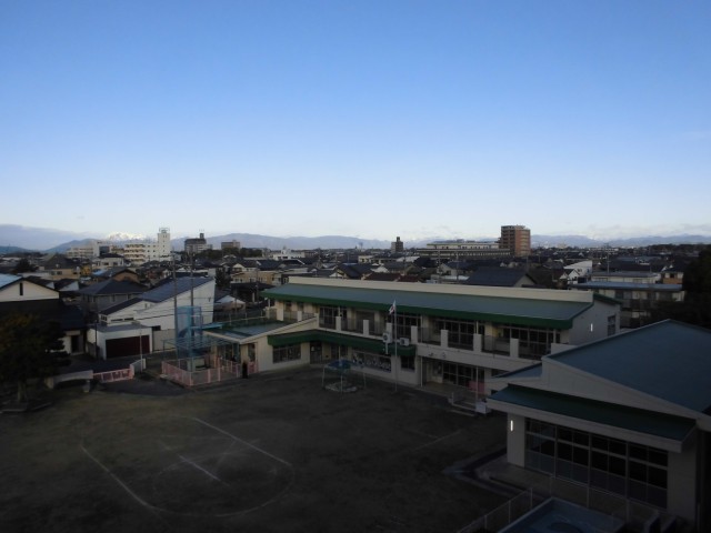 1.21 学校から見た朝の風景(2年) 公開日 2026/01/21 更新日 2026/01/21 2年 学校から見た朝の風景です。今日の朝は,0℃前後の寒さです。明日は降雪があるかもしれないという予報です。 +5