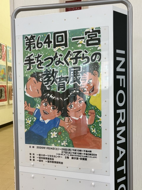 今日から27日(火)まで、一宮スポーツ文化センター2階の展示室で、手をつなぐ子らの教育展が開催されています。市内の小中学校の生徒の工夫された作品が集まっています。