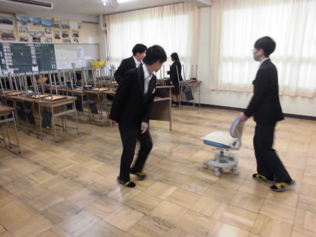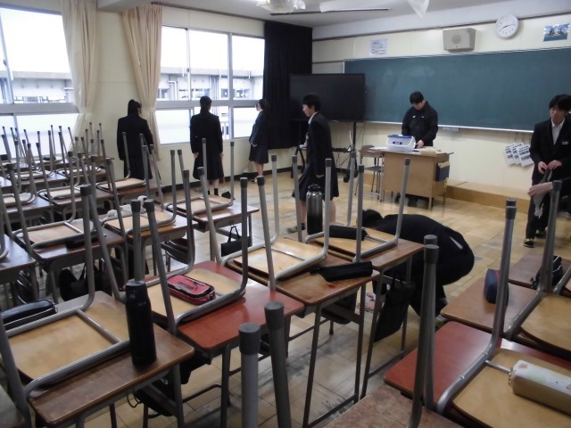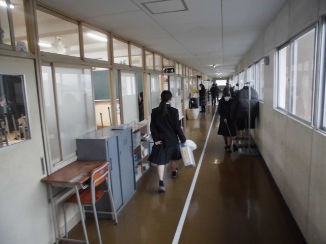 今日の朝の清掃の様子です。どの生徒も一生懸命に清掃に取り組んでいます。