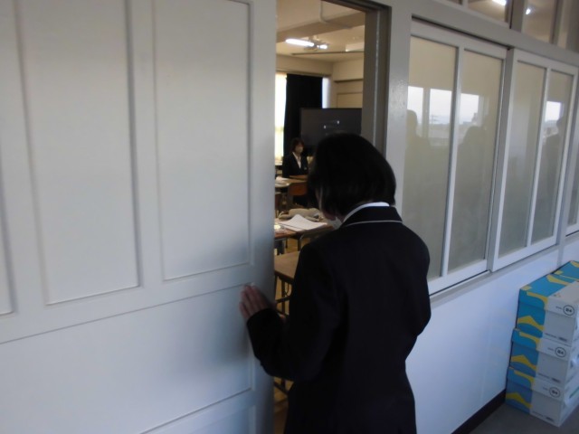 面接官役も生徒自身がやり、マナーや礼儀作法の確認をしました。