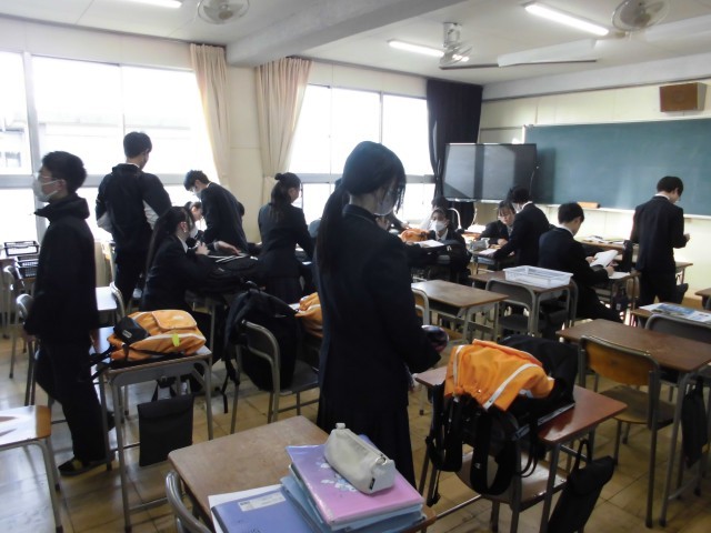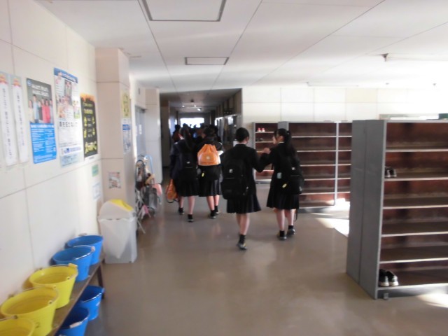 2.18 今日の登校の様子(2年) 公開日 2026/02/18 更新日 2026/02/18 2年 7時55分頃の昇降口は,登校する生徒で混雑しています。教室では,生徒たちは提出物を所定の位置に出したり,用具の片付けなどを行っています。 +5