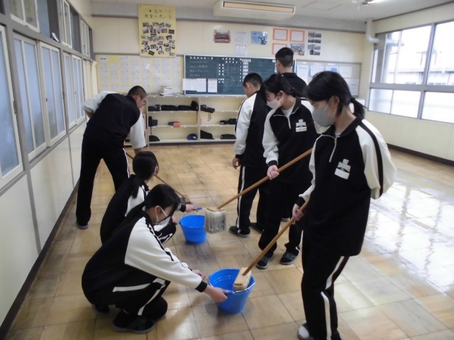 3年生から奥中学校への恩返しをしたいという企画で、一部の生徒で教室の油引きをすることにしました。今日は1・2年生の奇数クラスをピカピカにしました。誰かのために動く奉仕活動ですが、やっている自分たちも気持ちが良くなっているようで、みんないい表情をしていました。「人のため」は、知らないうちに「自分のため」にもなっているようです。