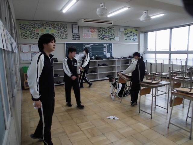 2時間目と3時間目は、教室の油引きと卒業に向けての制作をしました。