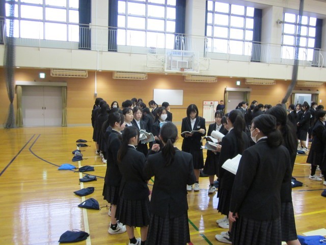 本日の7時間目は、昨日に引き続き1,2年生合同での合唱練習を行いました。卒業生を送る会で歌う曲や、校歌を練習しました。昨日よりも声量も大きく、卒業生への感謝の気持ちが感じられる合唱でした。今日より明日が、明日より明後日の合唱が素晴らしいものになるように練習を積み重ねていくことを期待しています。