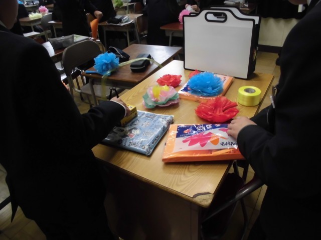 今日の5限は,明日の三年生を送る会の準備を行いました。