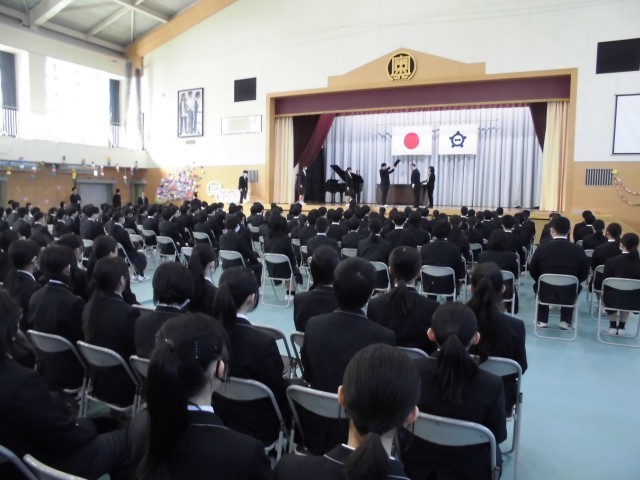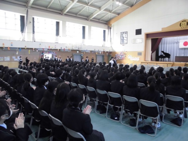3.5 卒業式予行(2年) 公開日 2026/03/05 更新日 2026/03/05 2年 今日の1・2限は,卒業式予行がありました。座席の確認,式の心構え,入場から退場までの式の流れ,合唱練習などを行いました。 +5