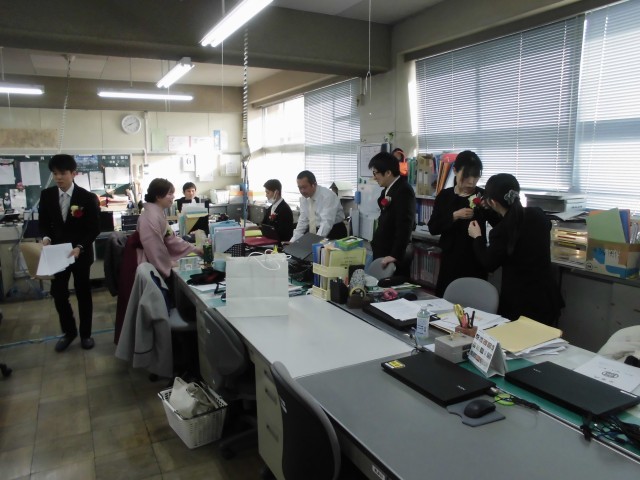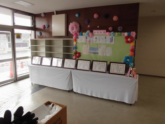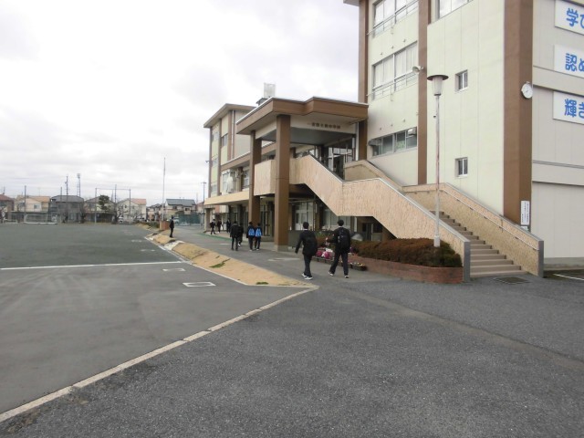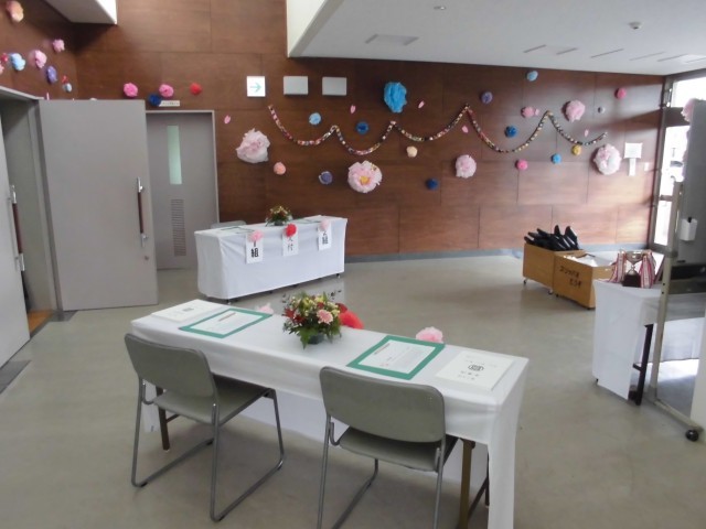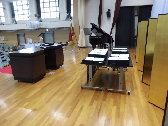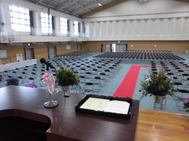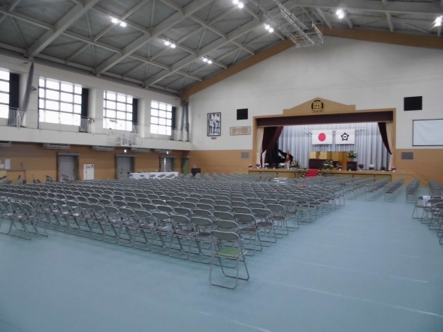 今日は中学校の卒業式です。2年生の生徒が中心になって,昨日会場の準備や清掃を行いました。