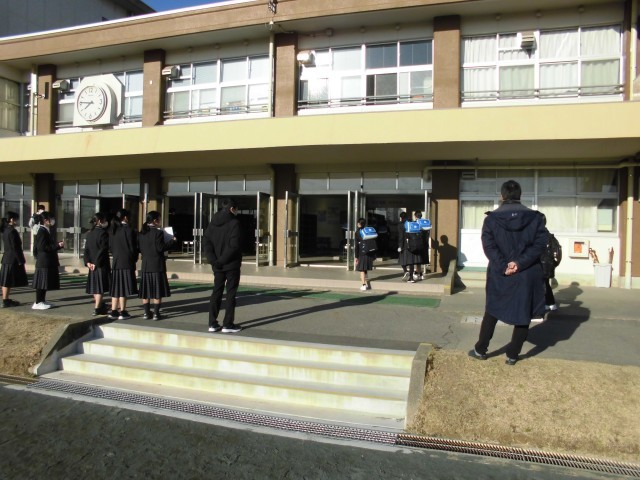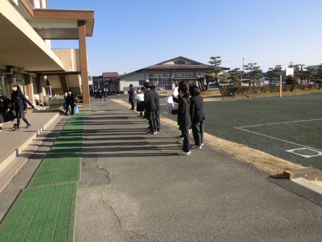 3.12 生徒会役員選挙運動(2年) 公開日 2026/03/12 更新日 2026/03/12 2年 来年度前期生徒会役員選挙の選挙運動が,朝昇降口で行われています。立候補者の生徒や応援の生徒が,登校してくる生徒にあいさつや投票依頼などを行っています。 +5