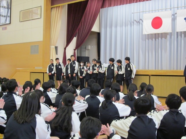 本日は、6,7時間目に学年レクを行いました。リーダー会中心に種目などを考え、司会進行から全て生徒の力でやり切りました。ケイドロとドッヂボールを行い、普段の授業では見られない、活発な様子や、笑顔が溢れた素敵な時間でした。学年として企画し、盛り上げ、全員で楽しむことができ、1年生らしく素直で元気な姿はこれからも大切にしてほしいと思います。今の学級での残り時間も少なくなってきました。級友との何気ない一日を大切にしてほしいと思います。