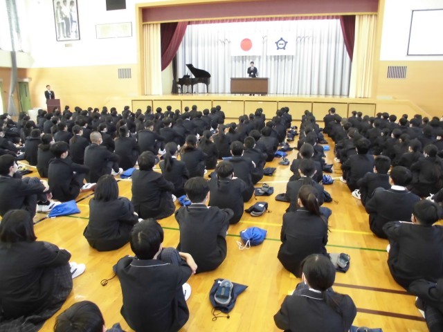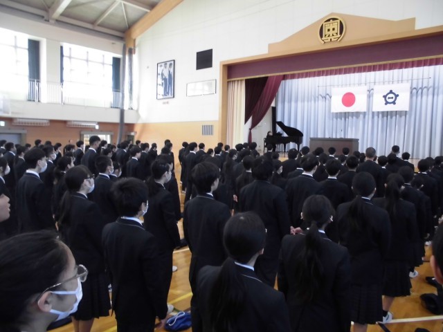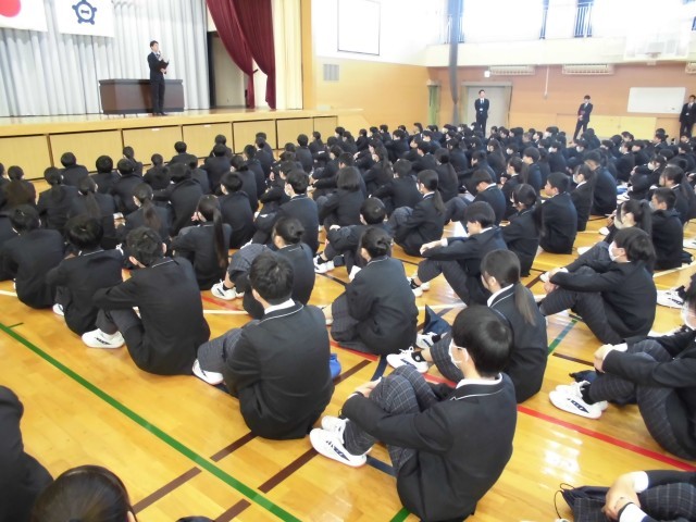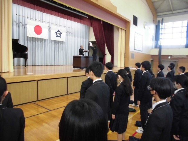 3.24 修了式(2年) 公開日 2026/03/24 更新日 2026/03/24 2年 今日は体育館で修了式がありました。国歌斉唱,修了証授与,校長式辞,校歌斉唱,交通安全指導・部活動指導・生徒指導の話などのあり,落ち着いた雰囲気の中で行うことができました。 +5