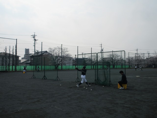 満開の桜に囲まれたグラウンドで、奥中生が元気に活動しています。