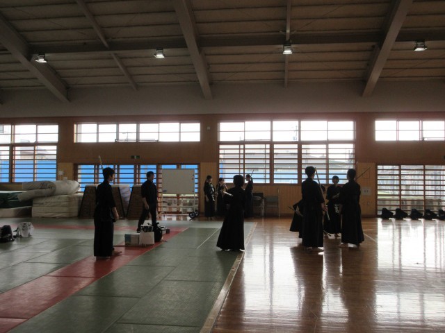 午前は、男女ソフトテニス部、野球部、剣道部、女子バスケットボール部が活動しています。