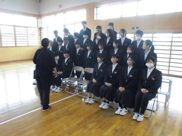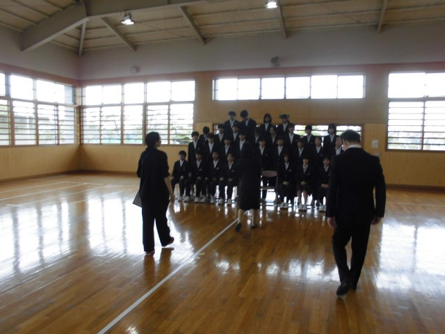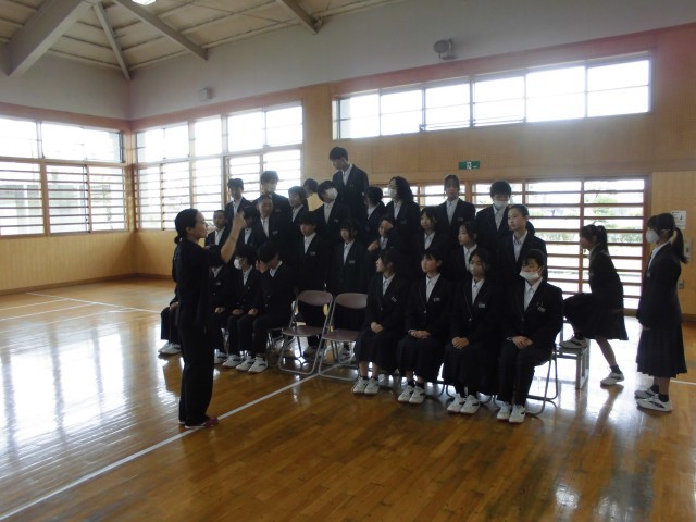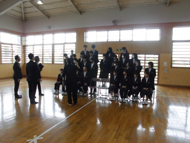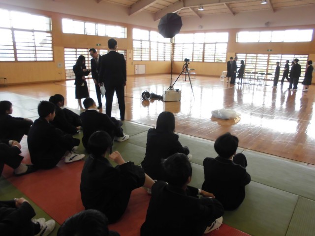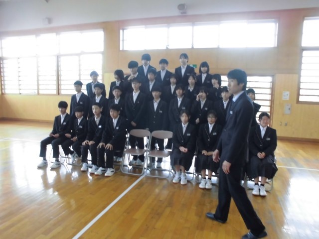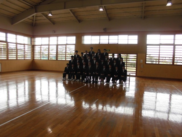 学級活動の途中で,武道場で学級写真の撮影が行われました。