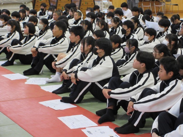 学年集会で、担当の先生の話や生活、学習についての留意点などを聞きました。どの生徒からも、新しい気持ちで2年生をスタートさせようという姿勢がひしひしと伝わってきました。今のやる気を持ち続け、自分の夢を実現するために何事にも挑戦していってほしいです。