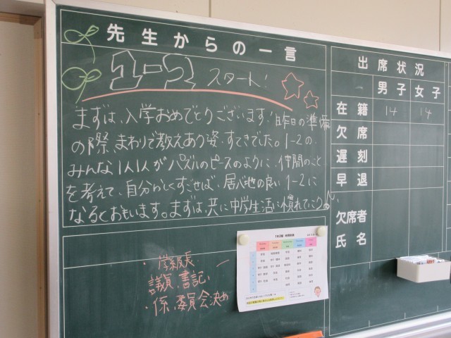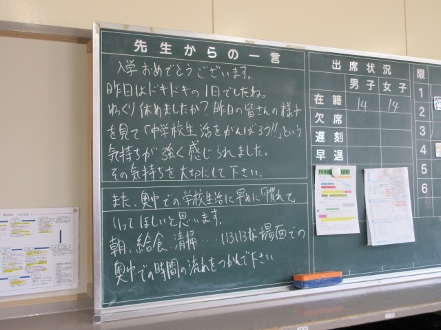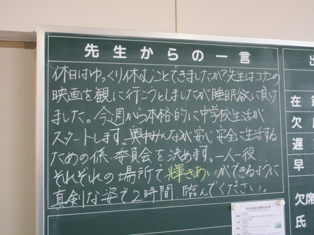 この1週間で、中学校生活に少しずつ慣れ、新しい友達をつくっていけるといいですね。