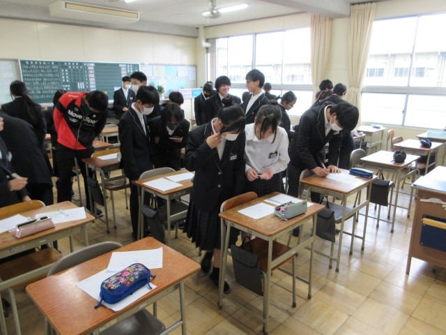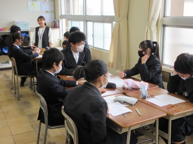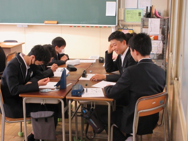 道徳「偏愛マップ」の様子です。授業の後半は、それぞれが書いたマップを紹介しあったり、コメントを書きあったりしました。生徒の間からは、「へぇーそうなんだ」「なるほどねぇー」などの声が聞こえてきました。新しく学級の仲間となった友達のまだ知らない一面を知り合うことができ、ほっこりとした時間となりました。