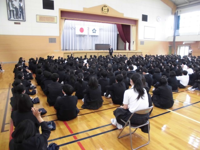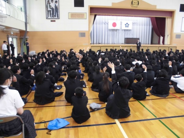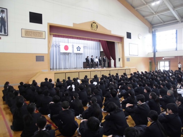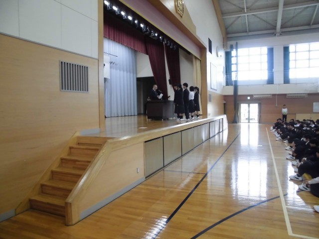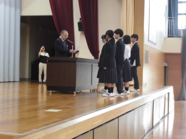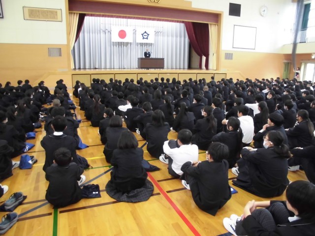 4.20 学校集会①(2年) 公開日 2026/04/20 更新日 2026/04/20 2年 今日の朝は,体育館で学校集会がありました。生徒指導で,生徒指導主事の先生の話を聞きました。その後,校長先生とのあいさつを行い,生徒会役員の任命式がありました。 +5