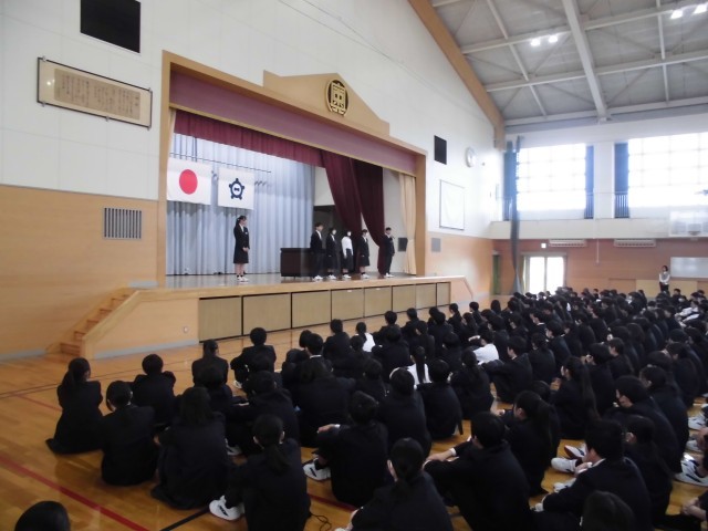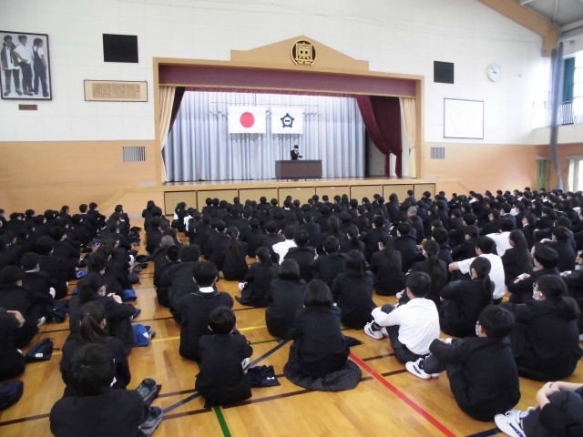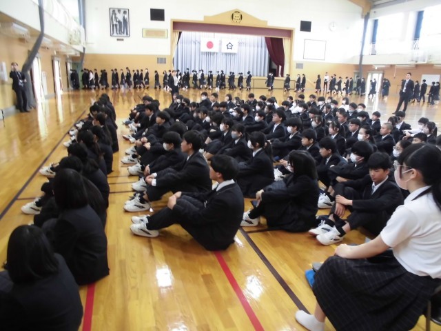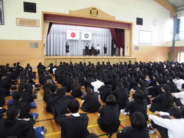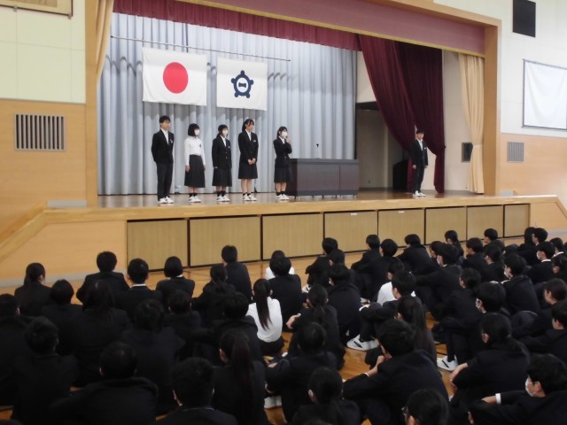 4.20 学校集会③(2年) 公開日 2026/04/20 更新日 2026/04/20 2年 校長講話の後,生徒会役員の交代式と緑化委員会からの連絡がありました。学校集会の後,学年で集まり,学年主任の先生の話を聞きました。学年目標の発表がありました。 +5