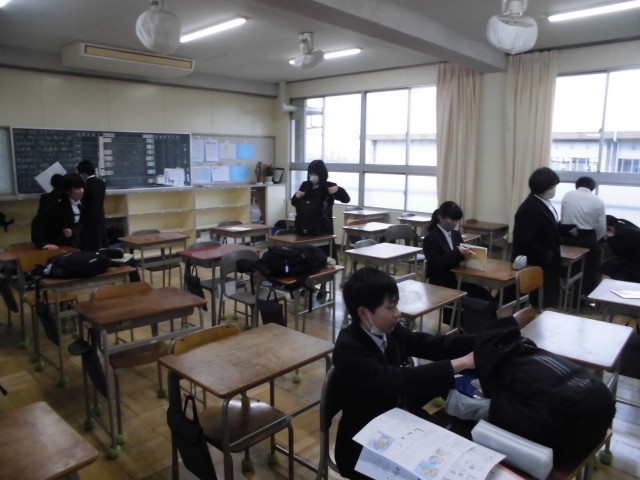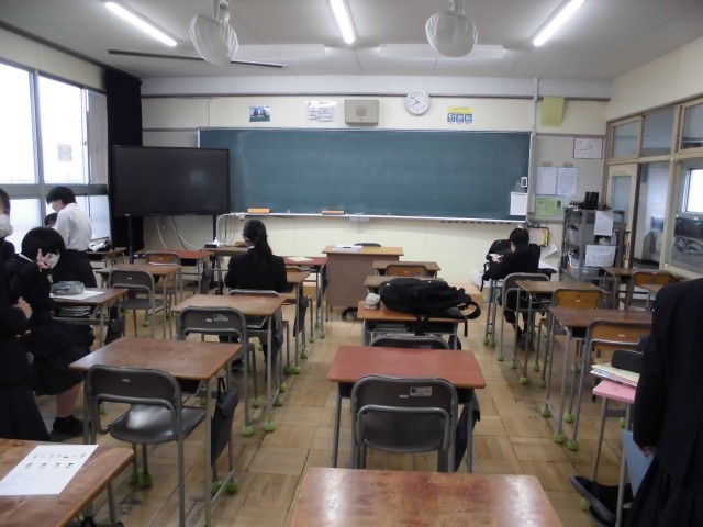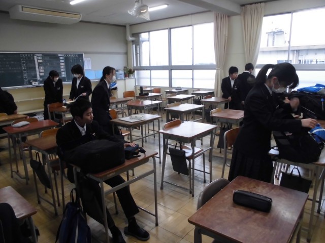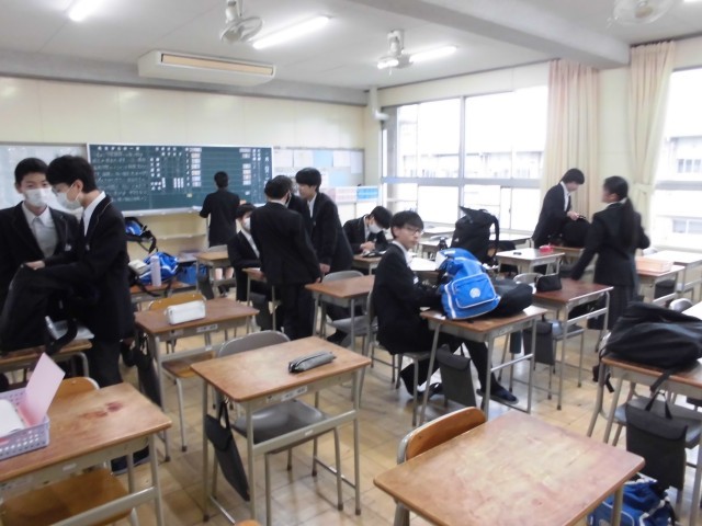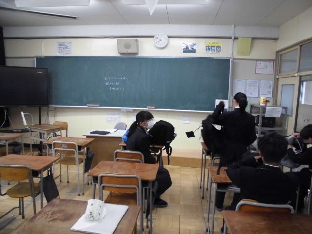 今日の7時50分頃の教室の様子です。用具を片付けたり,時間割の確認をしたりしています。