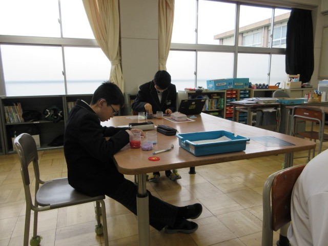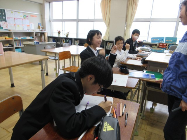 技術の授業では、ペーパークラフトを制作しています。かわいい作品を作り上げることができています。