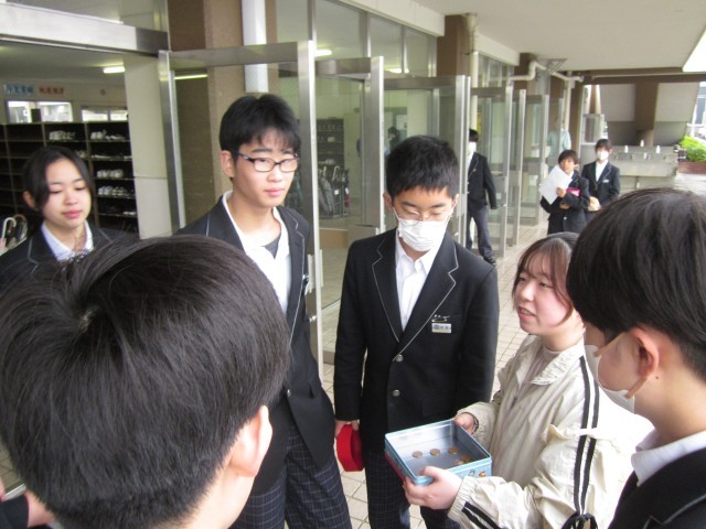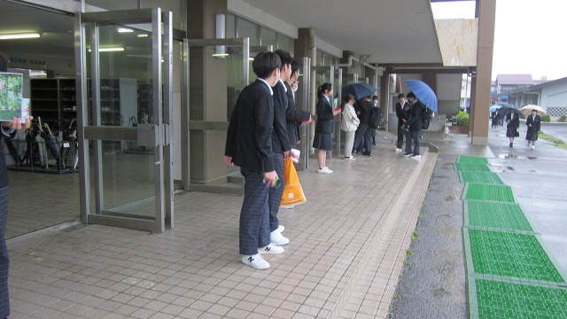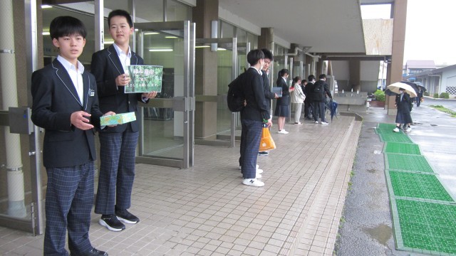 小雨ふる朝、昇降口前で緑化委員会の呼びかけで、「緑の募金活動」が行われました。初日でしたが募金に協力してくれる生徒たちも多くいました。あと、2日あります。ご協力をお願いします。