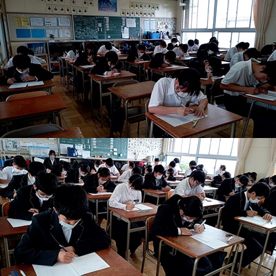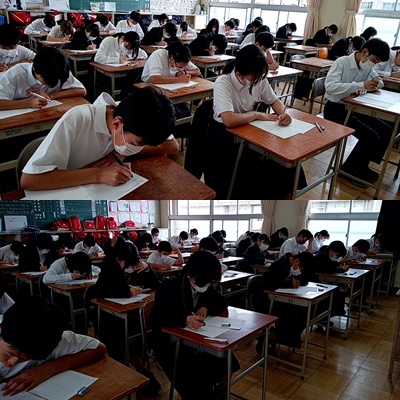 今日の6時間目に,数学と理科の平常テストをおこないました。