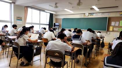 1時間目に国語と理科の平常テストがありました。テストの前には黙々と勉強する姿が見られました。