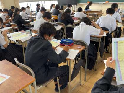 本日、期末テストの範囲が発表されました。さっそく朝の清掃後、テスト計画を立てていました。一日一日の勉強の計画を丁寧に立てていました。